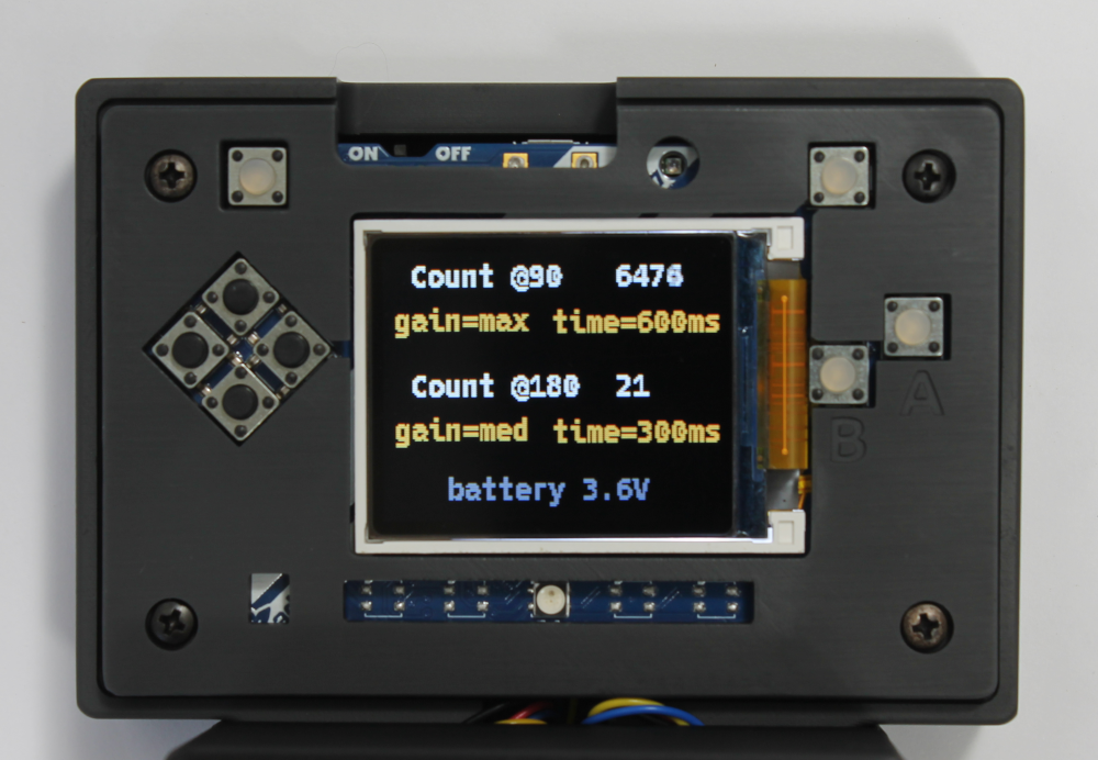 In this mode you can view the raw counts at both the 90° and 180° sensors. You can set the gain and integration time for both sensors in this mode. There is more information on setting sensor integration time and gain in Optimizing the light sensor settings.