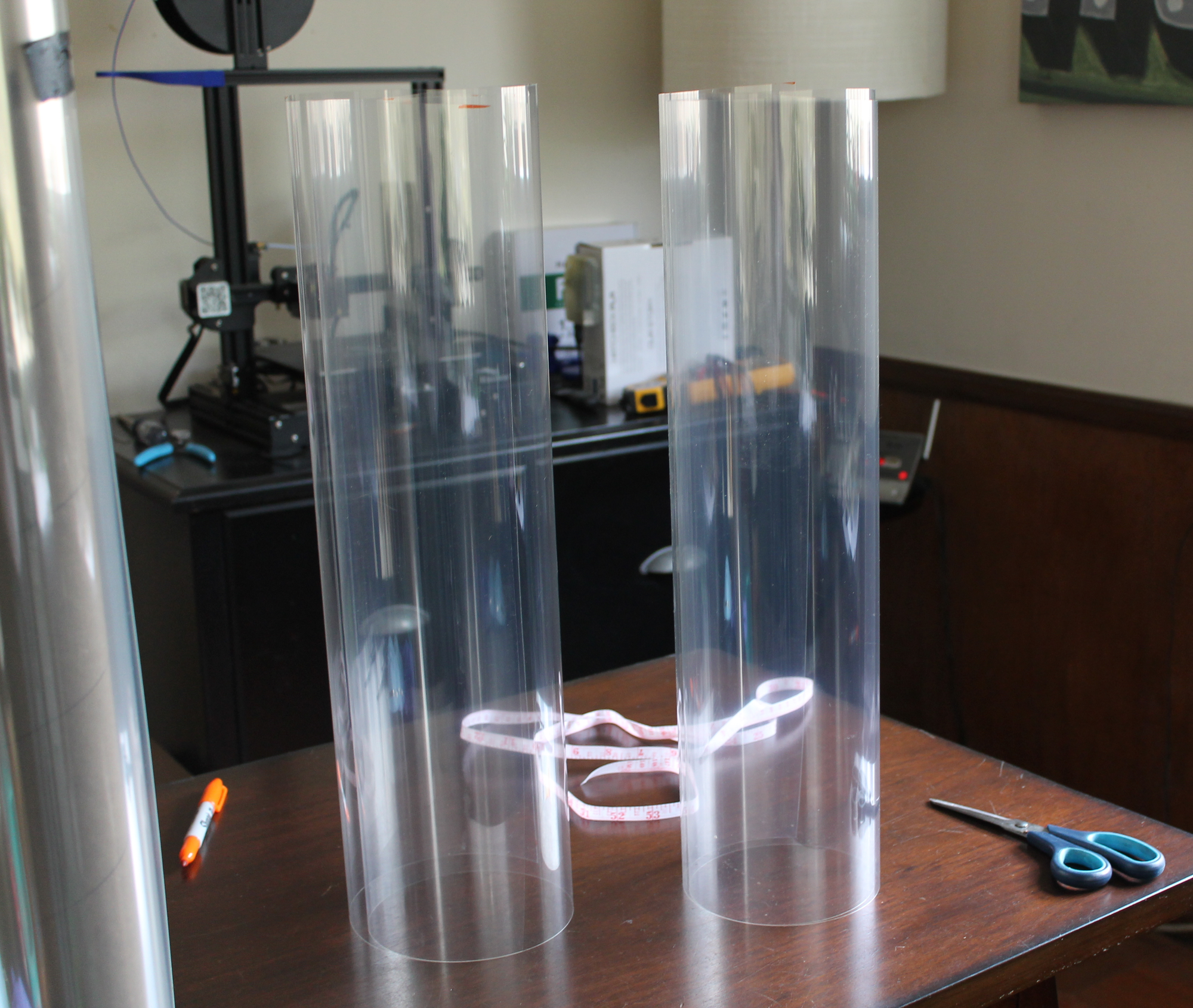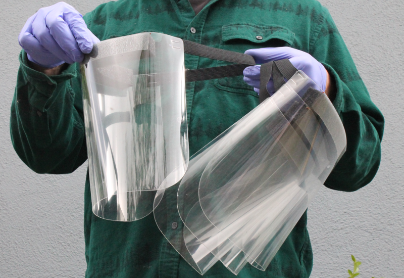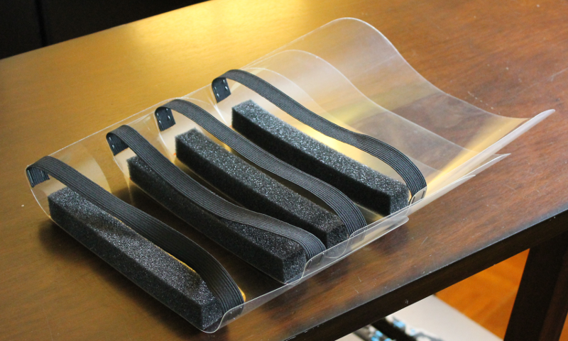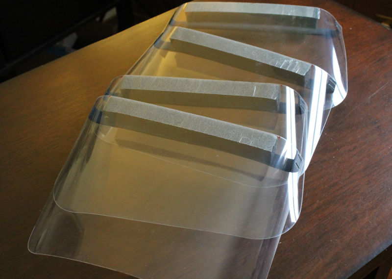 In this blog post we describe our experience making a set of four face shields. After going through the steps below we estimate we could make hundreds a day if needed. The estimated cost per shield is around $2 not including shipping and tax.