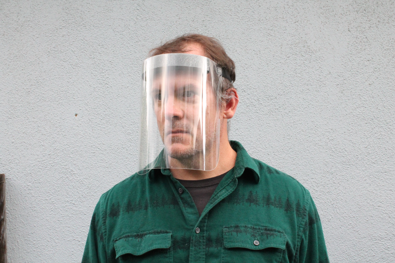 Here are some final images of the face shields after assembly and ready to use. We can report that it is comfortable to wear and fits snug.