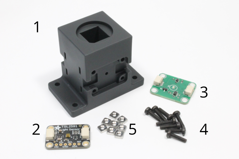- Adafruit TSL2591 Light Sensor Board (with indicator LED disabled)
