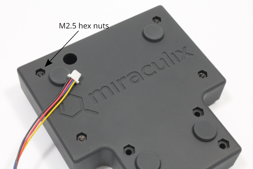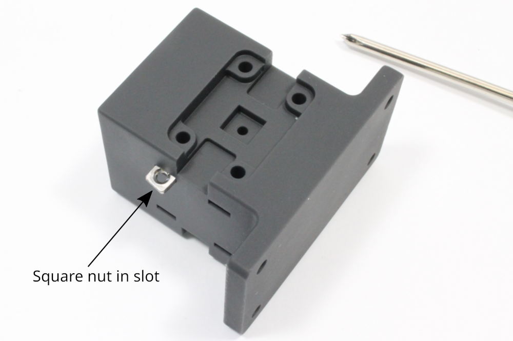 - Place 4 of the square nuts into the slots on the side of the cuvette holder