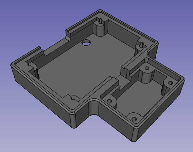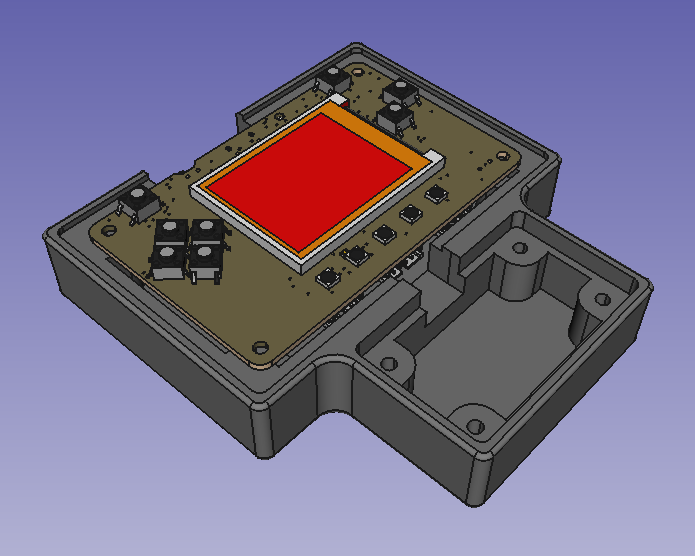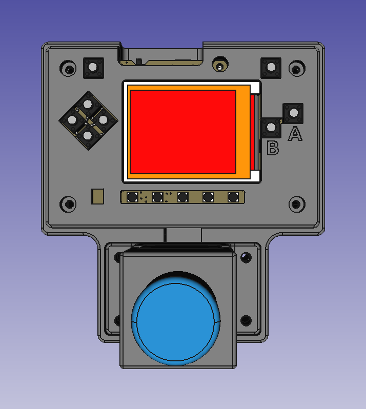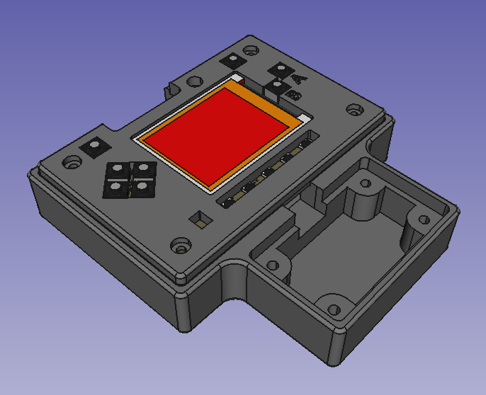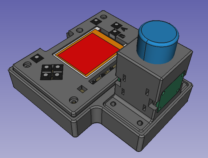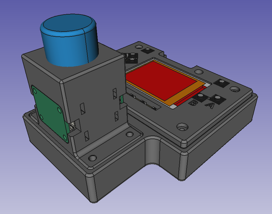 We have been using FreeCAD for 3D hardware designs as described in this previous Newsletter. In this project we used the KiCad StepUp workbench to import a 3D model of the Sensor and LED PCBs from KiCad and the A2plus Workbench to create an assembly of the complete enclosure. We also used a 3D model of the PyBadge made available at Adafruit CAD Parts on github.