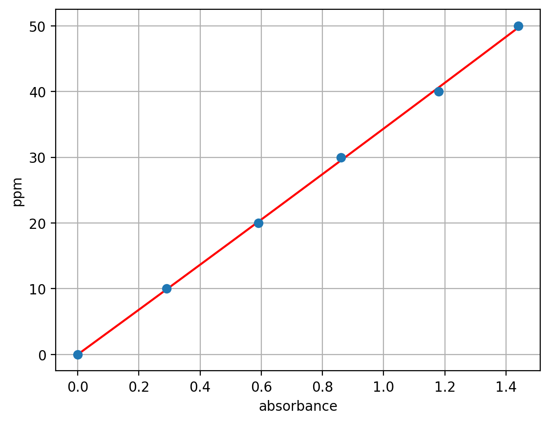- Turn on the Open Colorimeter and select absorbance. Blank the colorimeter with the 0 ppm nitrate solution and measure absorbance of all of the solutions.