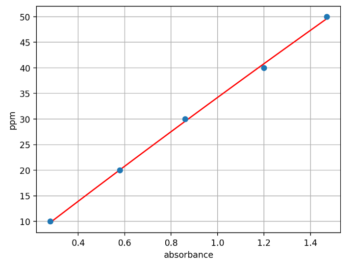 The first column of data should consist of the test samples. These should be given in your Test Units, e.g. ppm or mg/L. In the example file above these are the numbers 0, 10, 20, ... , 50.
