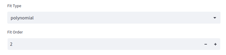If the Fit Type = polynomial is selected an additional field, Fit Order, will appear asking you to specify the order of the polynomial you wish to use for the fit as shown below.