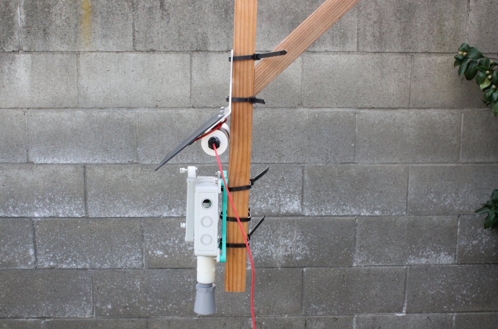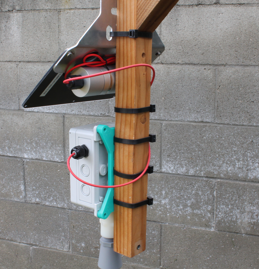 i) Using the zipties, mount the enclosure and solar system as shown in this example. Make sure everything is tightened down securely before moving to the next step.