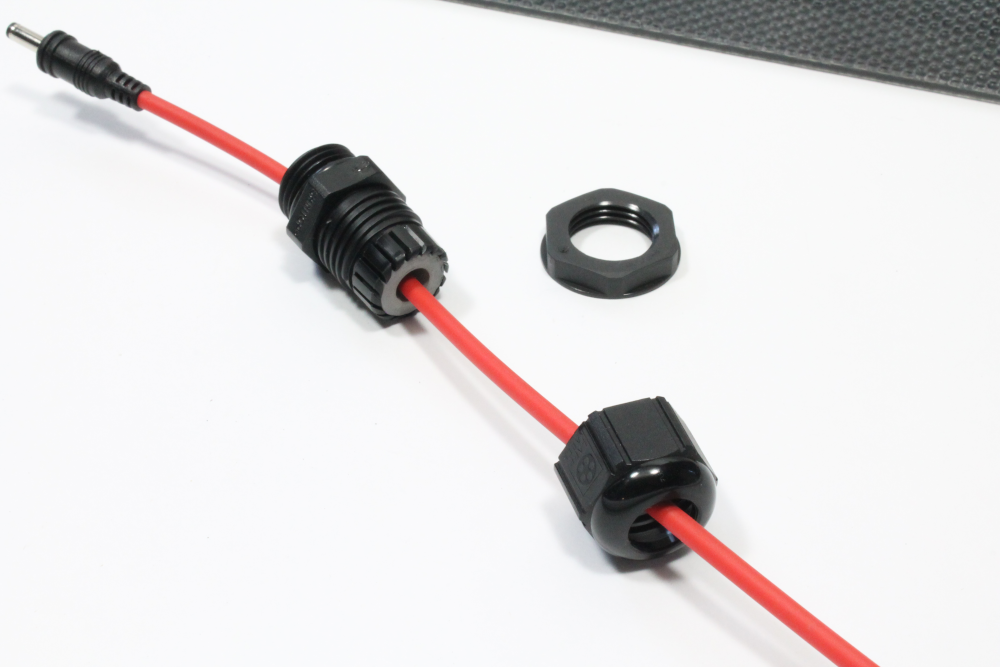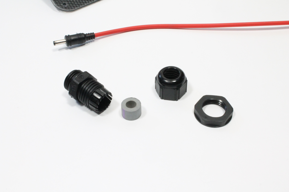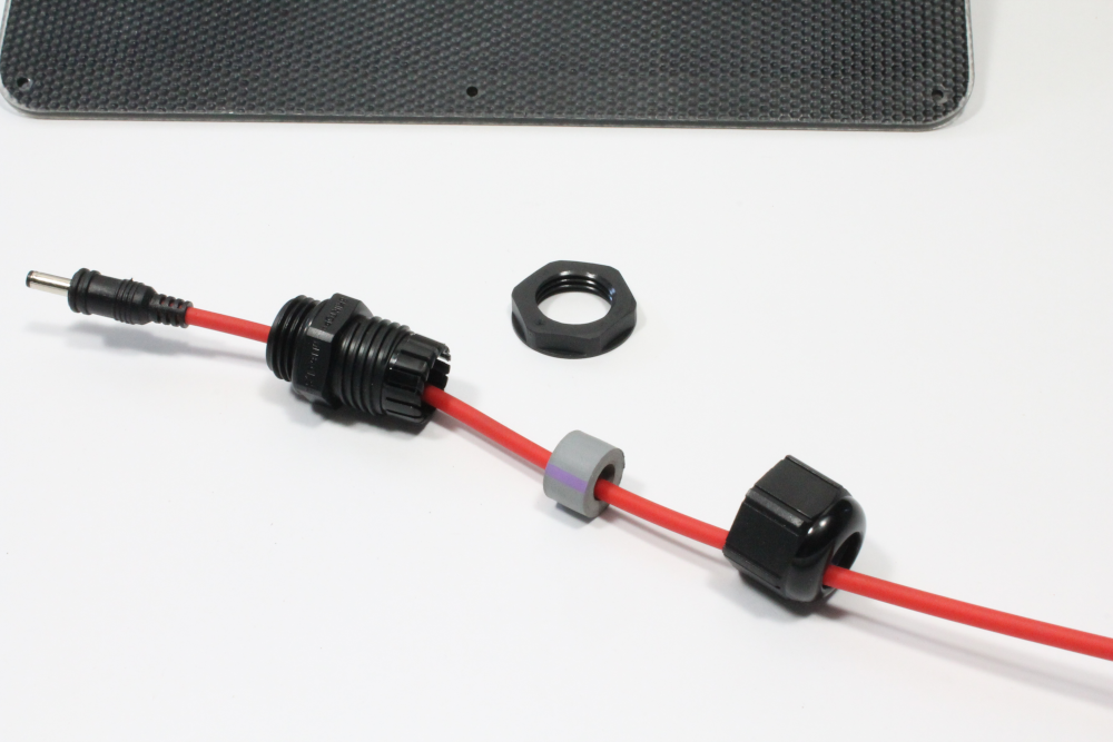 iii) Next, work the rubber gasket onto the power cable. This can be a tight fit over the plug, so gently push/slide the rubber gasket until it goes onto the cable