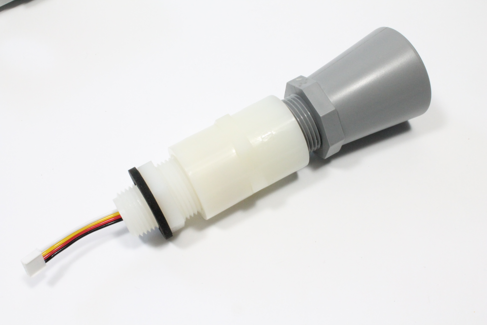 iii) Fit the extender pipe over the cable and adapter and screw directly onto the max sonar sensor. Fold the cable into the extender pipe leaving approx. 1-2 inches of cable sticking out