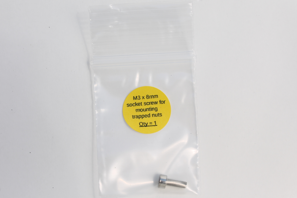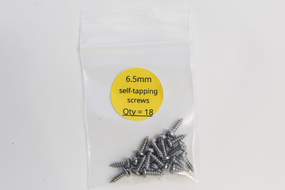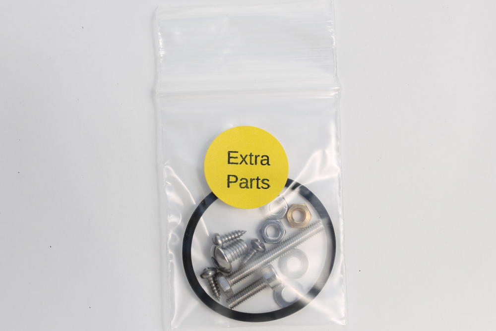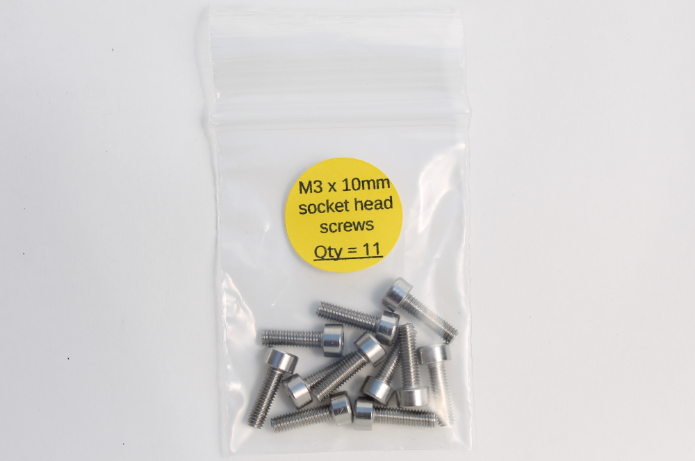 The hardware kit contains 9 bags of screws, nuts, washers and O-rings plus a ball-end Allen key.