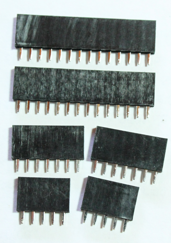 - 2 x 5 pos female header, Digikey # S6103-ND. Pull pin out of the header where appropriate on one of the 5-pos headers