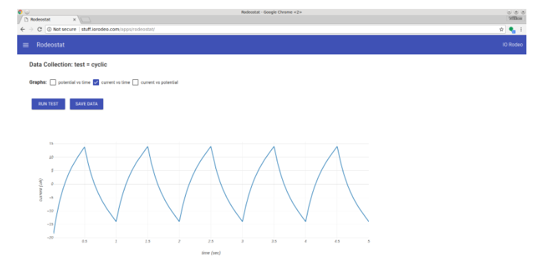 - Web App software: for users who would like to get started collecting data right away we provide the Rodeostat Web App software, which runs entirely in the web browser. It has a friendly graphical user interface which allows you to set parameters, visualize test results and save data without requiring any programming.