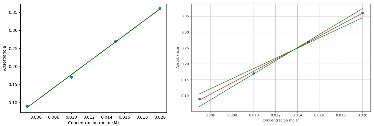 With these results we built a linear regression and calculated the error of the regression parameters with a Python script for each colorimeter.