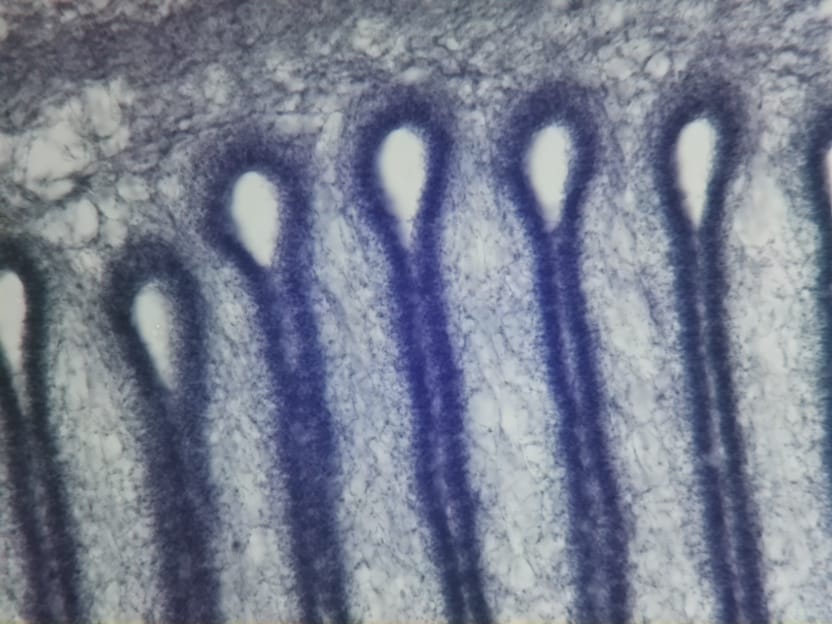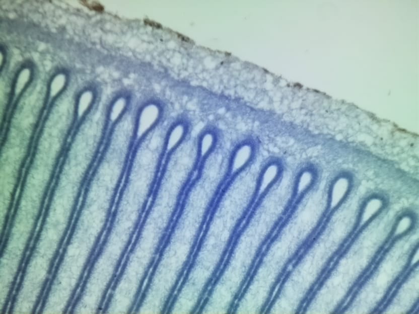 Once you have your microscope build finished, the next step is starting to image your slides using the web application interface. We found the web application interface intuitive to use. In addition to the stage navigation tools, there are automatic focusing tools, image capture tools, gallery tools and settings e.g. for adjusting exposure times. At this time we haven't explored all of the web interface functions yet. To get started we used Amscope prepared microscope slides. Below are some of the micrographs we collected from our first time using the microscope.