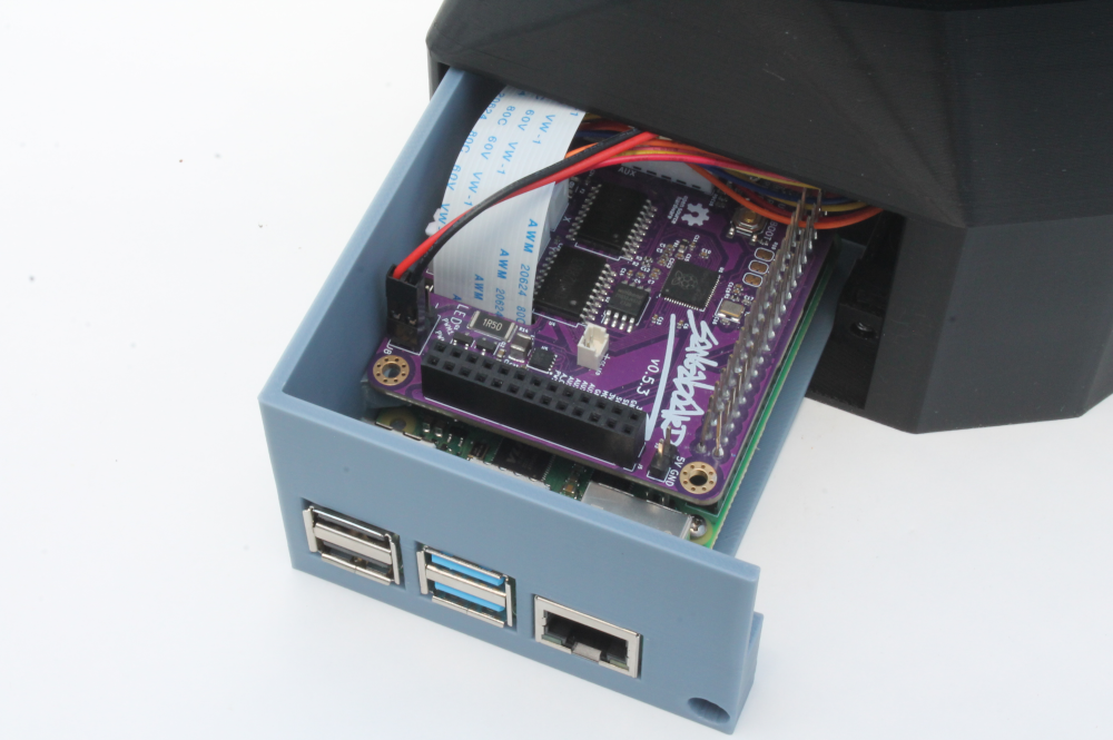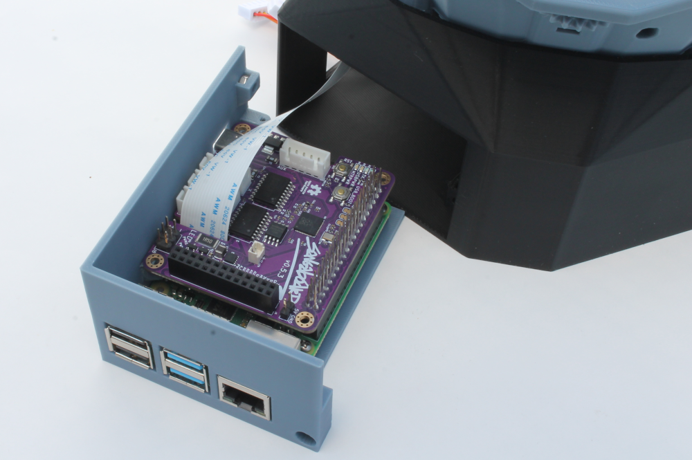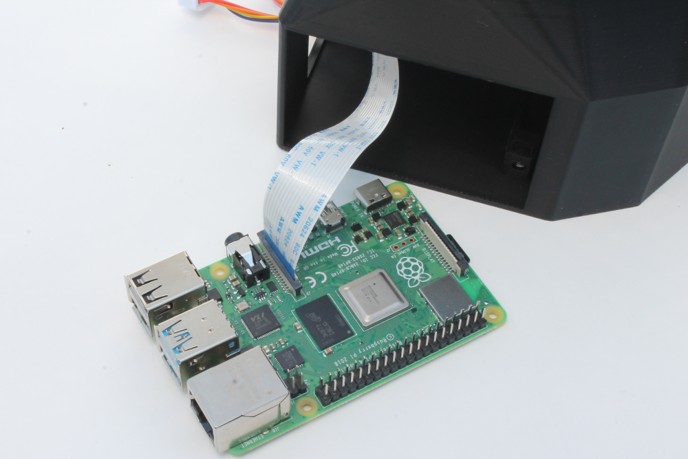 We prefer to connect the camera cable first before mounting the Raspberry Pi into the electronics drawer. It is easier to access the cable connector before placing it in the drawer.