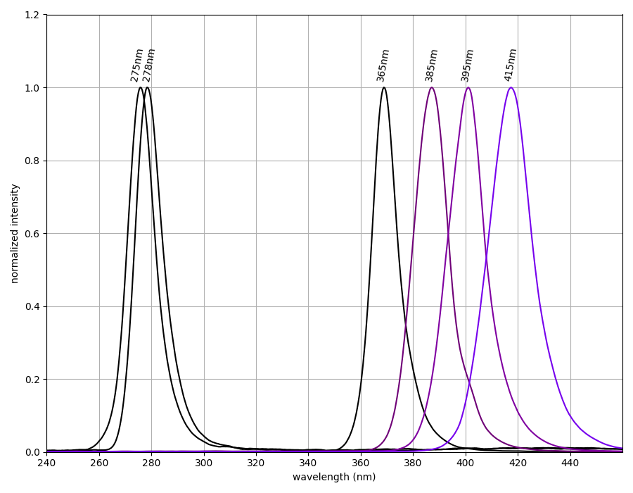 We have also developed a series of accompanying UV LED boards for this version of the Open Colorimeter. We currently have six different UV wavelength options available.