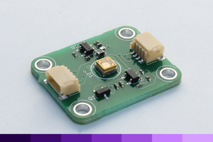 The UV Open Colorimeter light sensor board is the AS3771 UV Sensor Board which we described in previous posts. With this UV sensor, users can select between three measurement channels: UV-A, UV-B and UV-C.